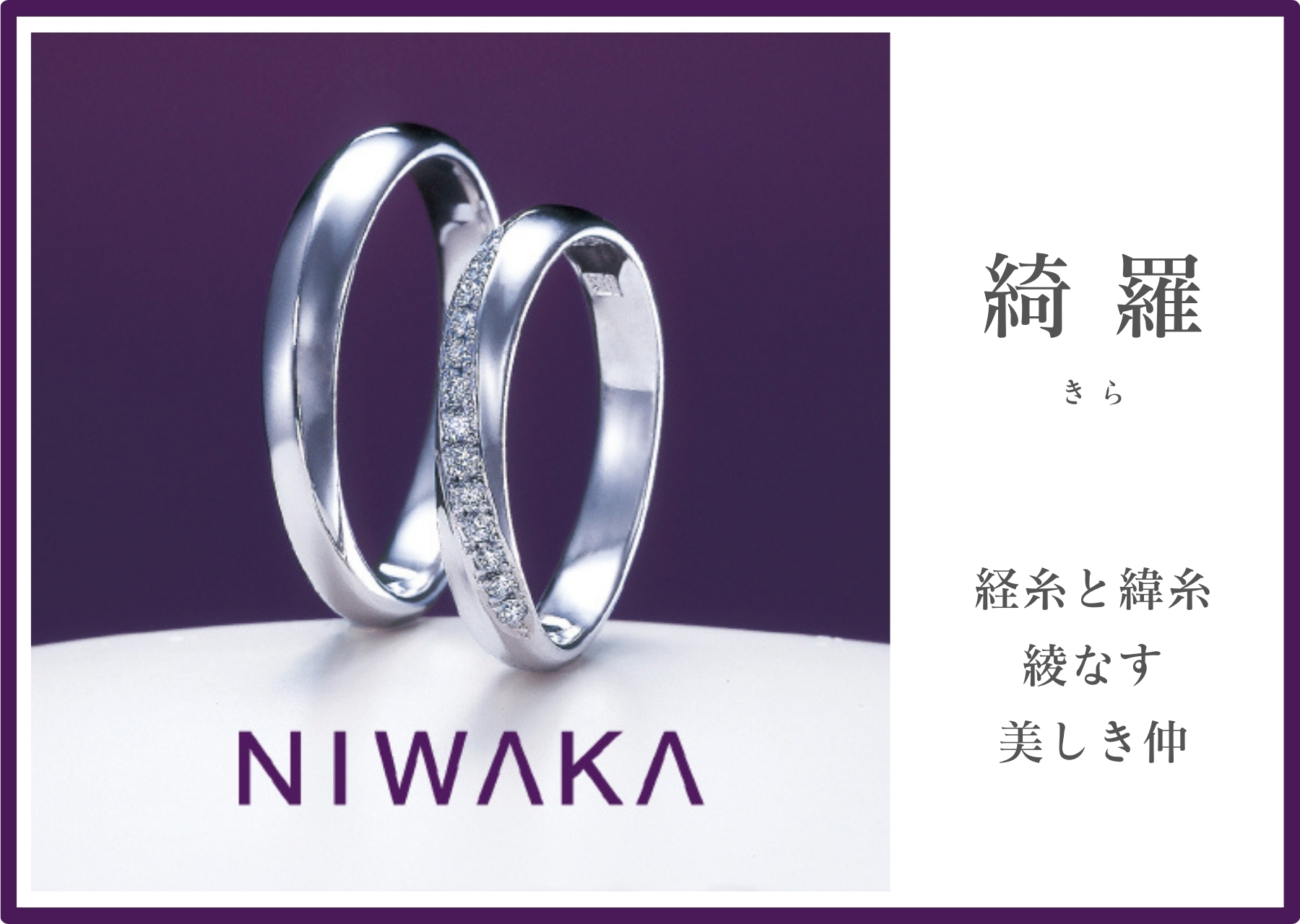俄(NIWAKA)という京都生れのブライダルリングがお役に立っています。